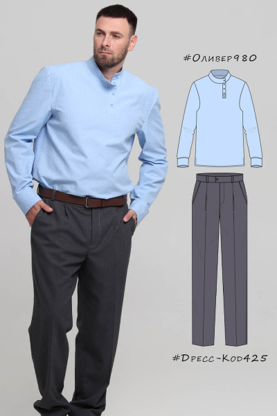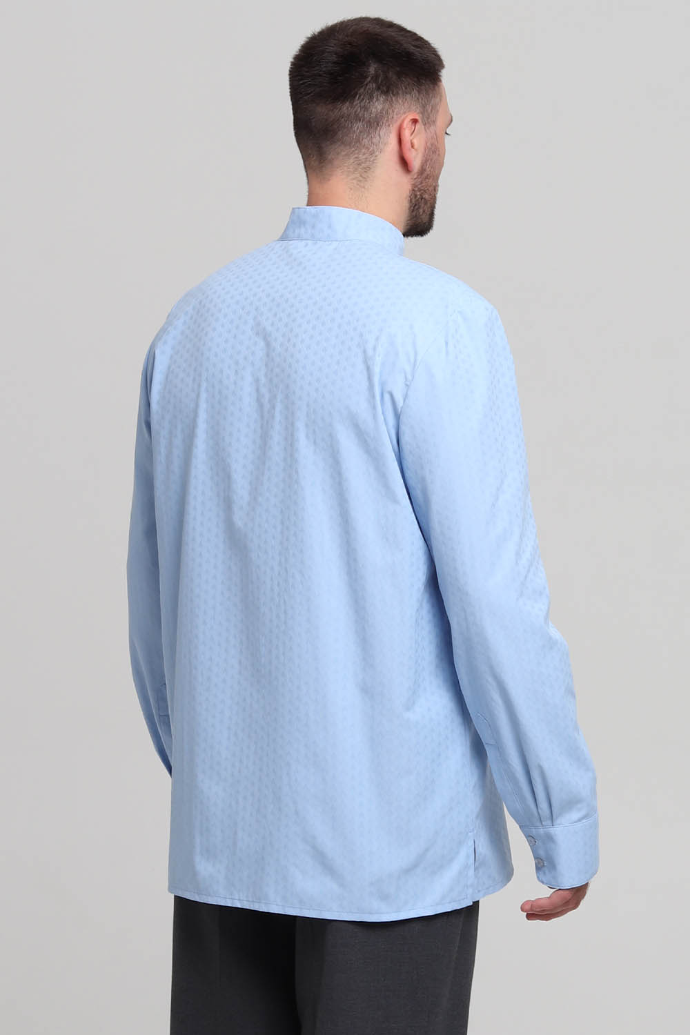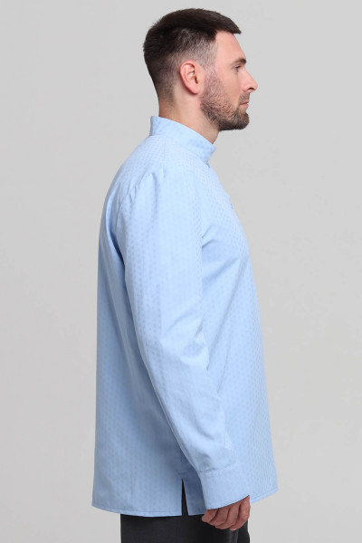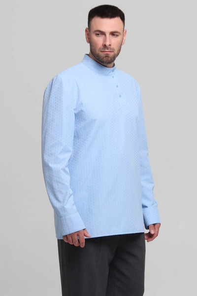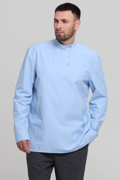 Застёжка - смещённые влево относительно центра переда втачные планки. Воротник и планки застёгиваются на обмётанные петли и пуговицы. Рукава втачные, длинные. По низу рукавов предусмотрен разрез, обработанный планкой, 2 складки и притачные, застёгивающиеся на обмётанные петли и пуговицы, манжеты. По низу боковых швов изделия предусмотрены невысокие разрезы.