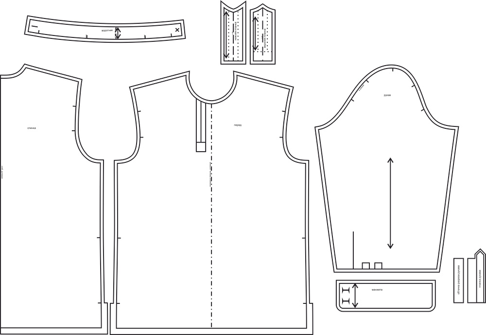 Выкройки даны с припусками на швы. Они обозначены двойным контуром.