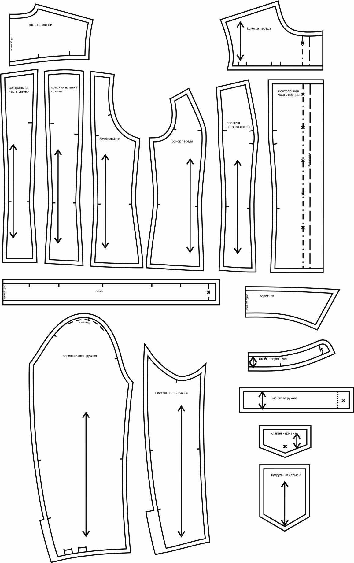 Выкройки даны с припусками на швы. Они обозначены двойным контуром.