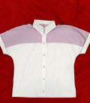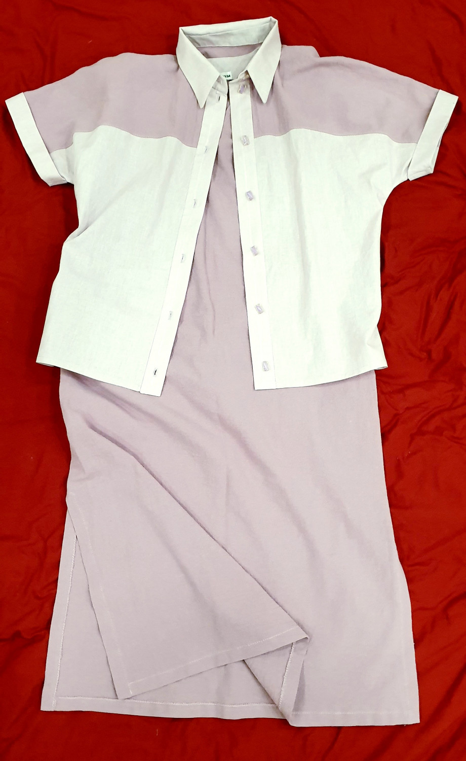 Выкройка женской рубашки среднего объёма, прямого силуэта, с цельнокроеным рукавом. Перед — с кокетками. Спинка — с кокеткой. Горловина рубашки обработана отложным рубашечным воротником с отрезной стойкой. Застёжка — центральная, на притачные планки, обмётанные петли и пуговицы на планках и стойке воротника. Рукава — цельнокроеные, длиной до середины плеча, с манжетами по низу. Длина рубашки — до линии бёдер.