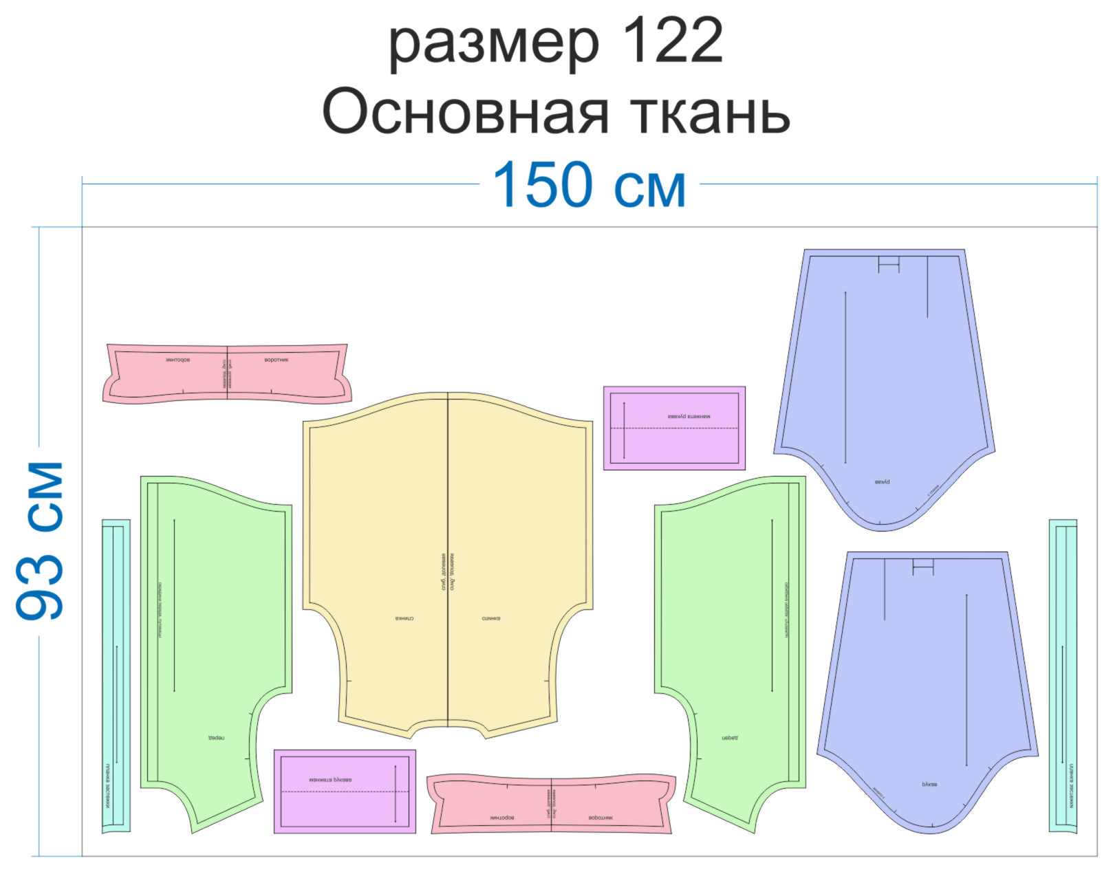 Образец раскладки на ткани (расчет выполнен для однотонной ткани без учета направления ворса):