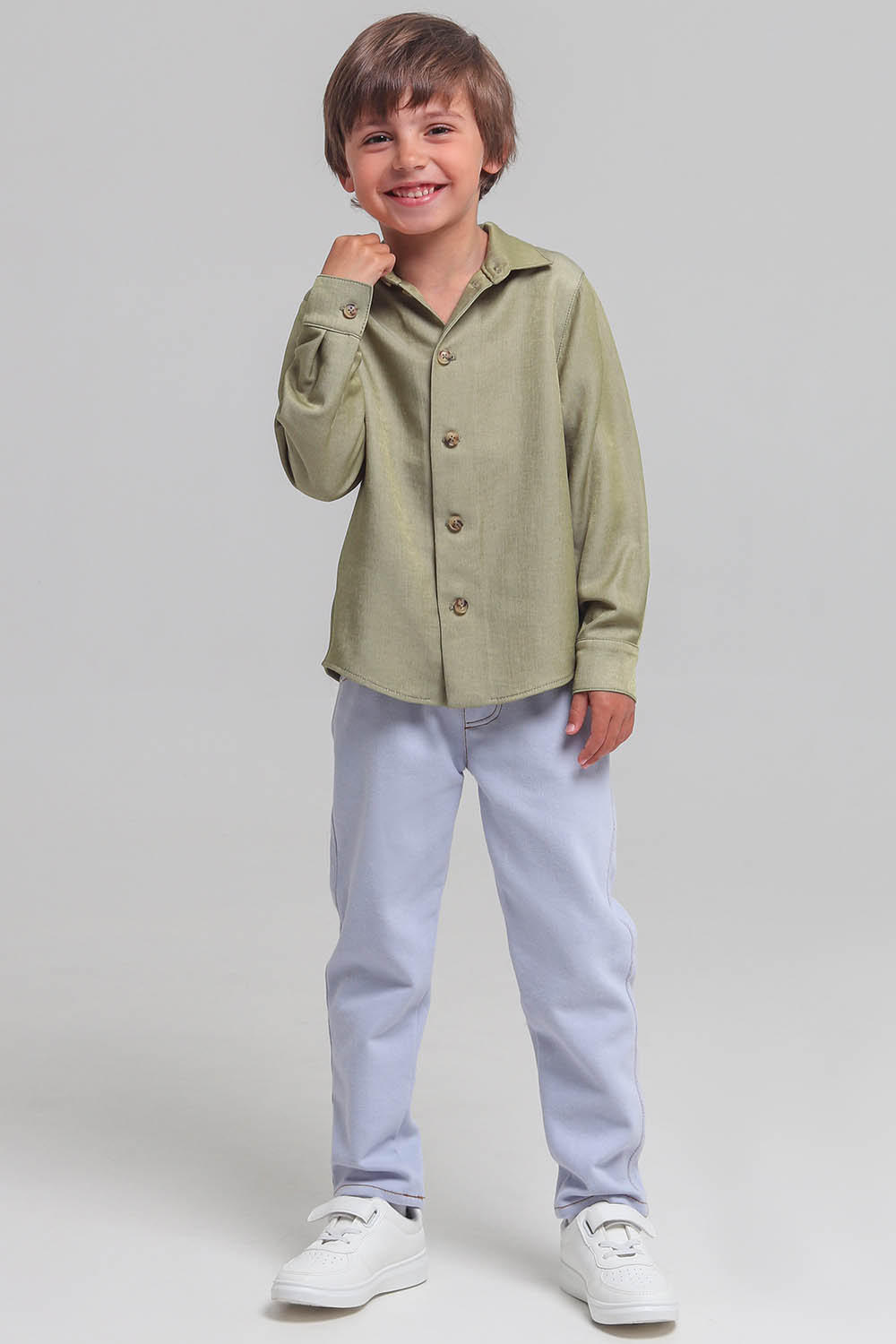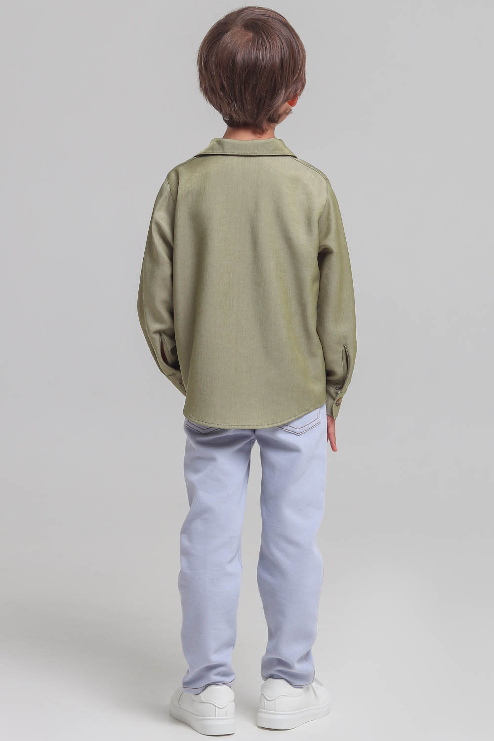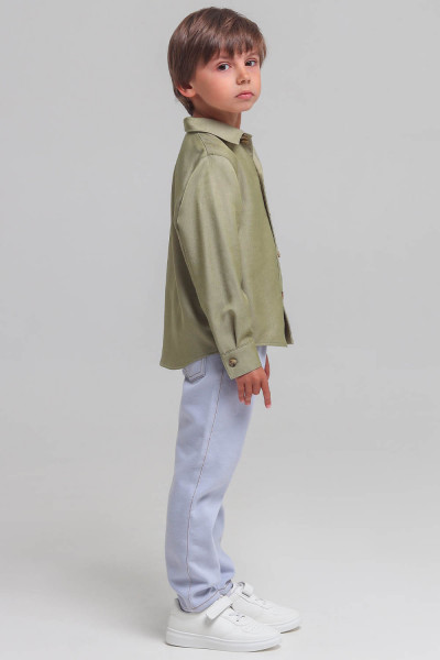 4Выкройка детской рубашки среднего объёма, прямого силуэта, с немного удлиненным плечом. Детали переда и спинки - цельные, без формообразующих конструктивных элементов. Горловина рубашки обработана рубашечным воротником на цельнокроеной стойке. Застёжка - центральная, на обтачные планки, обмётанные петли и пуговицы. Рукава - втачные, длинные, с разрезом по низу, на притачной застёгивающейся манжете. Форма низа рубашки - фигурная. Длина - до линии бёдер.
