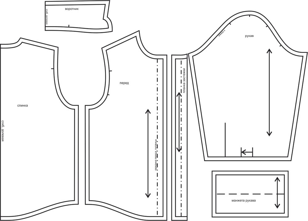 Выкройки даны с припусками на швы. Они обозначены двойным контуром.