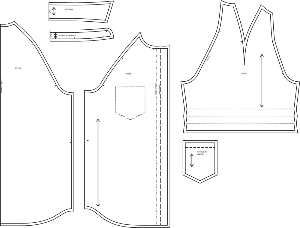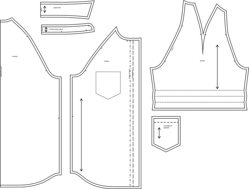 Выкройки даны с припусками на швы. Они обозначены двойным контуром.