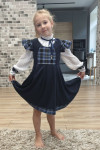 Модель сарафана с крылышками отлично подойдет в качестве школьной формы. Пышная юбка со складками и оригинальные рукавчики крылышки подчеркнут яркий стиль. Данная модель сарафана будет хорошо сочетаться с различными видами блузок. А подбирая контрастные оттенки, комбинация блузы и сарафана будет смотреться более выигрышно. Его можно использовать с более сдержанными цветовыми решениями блуз в повседневном образе, а более яркий вариант подойдет для торжественных мероприятий.