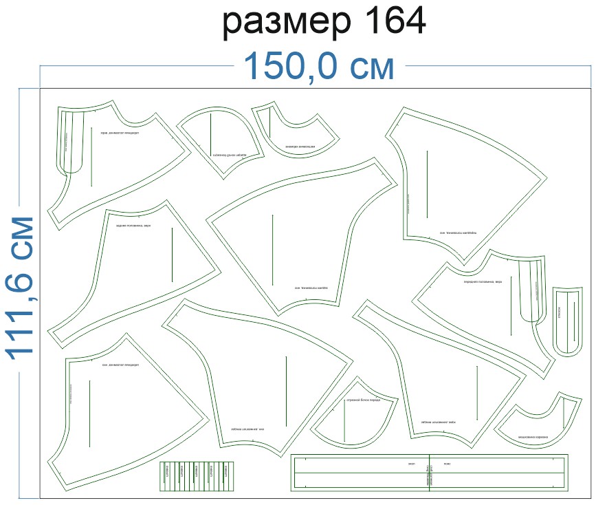 Образцы раскладки на ткани для выборочных размеров (расчет выполнен для однотонной ткани без учета направления ворса):
