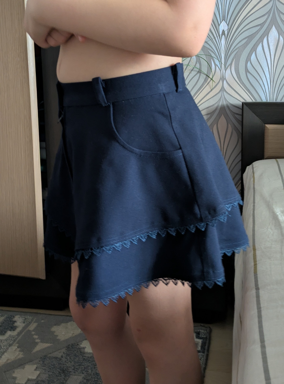 10Параметры модели: рост 162 см, обхват груди 82 см, обхват талии 62 см, обхват бедер 82 см. Выбрана выкройка 164 размера. Корректировки не выполнялись.