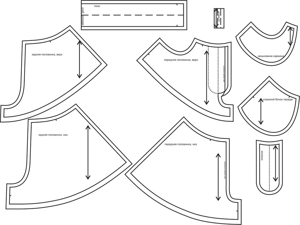 Выкройки даны с припусками на швы. Они обозначены двойным контуром.