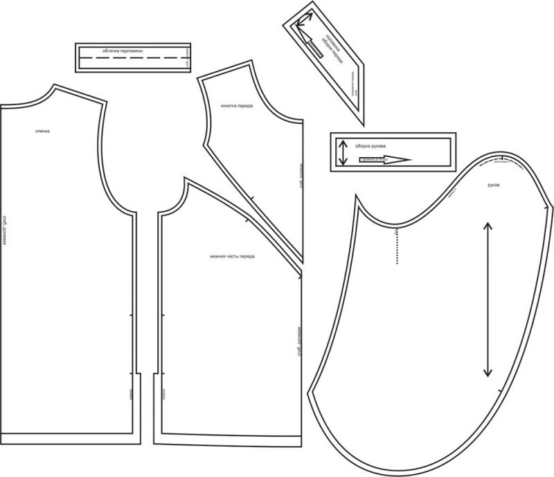 Выкройки даны с припусками на швы. Они обозначены двойным контуром.