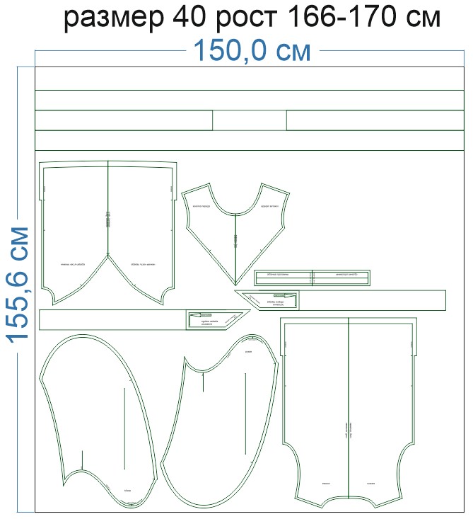 Внимание: расчет выполнен для однотонной ткани без рисунка, без учета направления ворса и возможной усадки! Усадка может достигать 15-20% от длины материала. Обязательно учитывайте это и берите с запасом.
