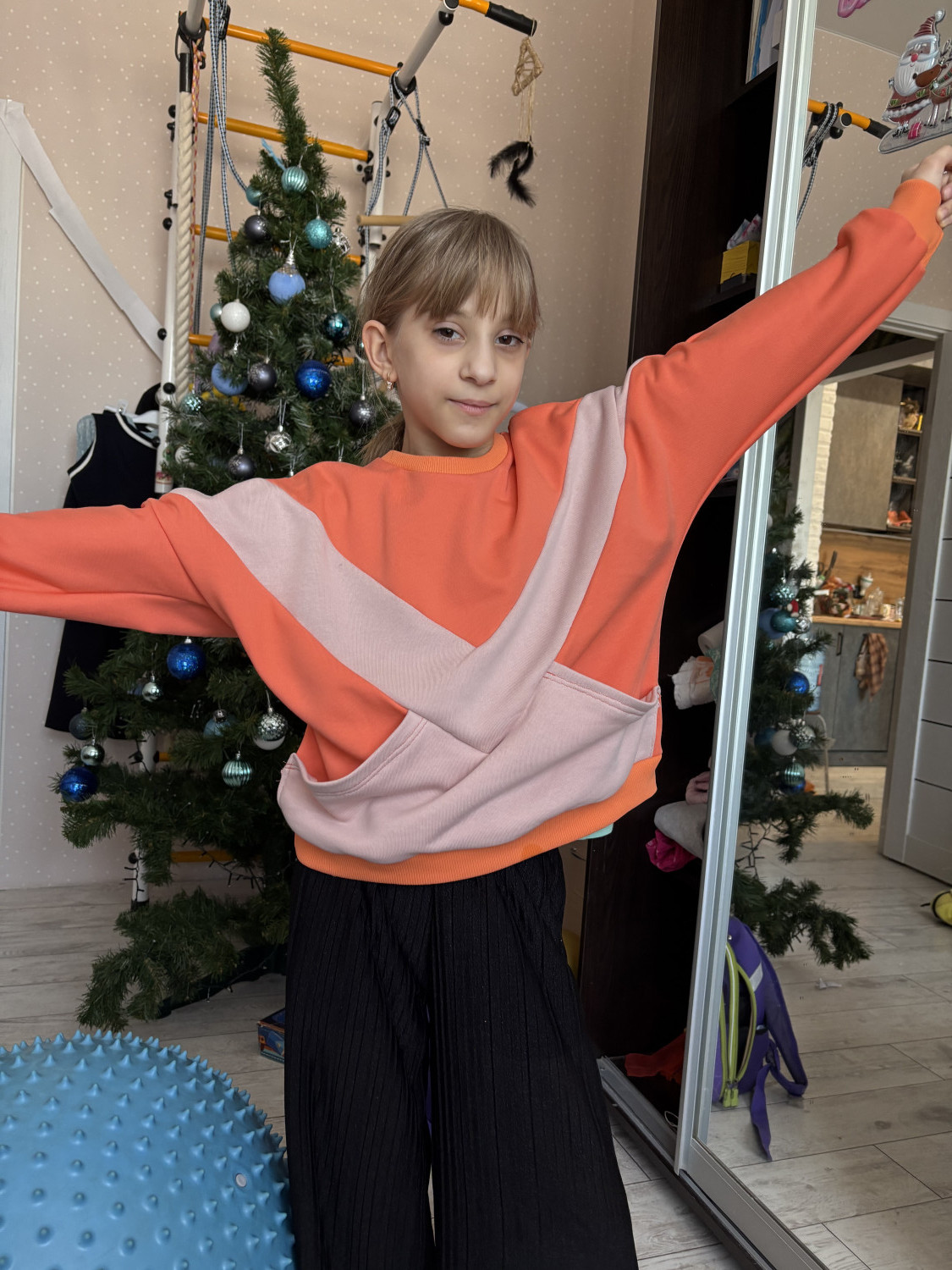 Длина свитшота — до линии бёдер. Модель подходит как девочкам, так и мальчикам.