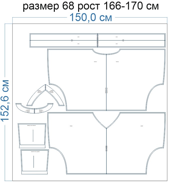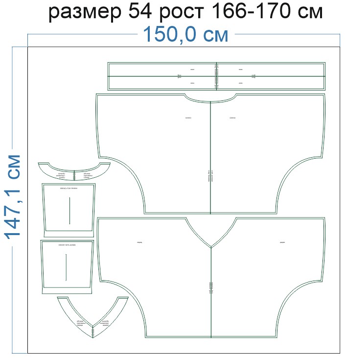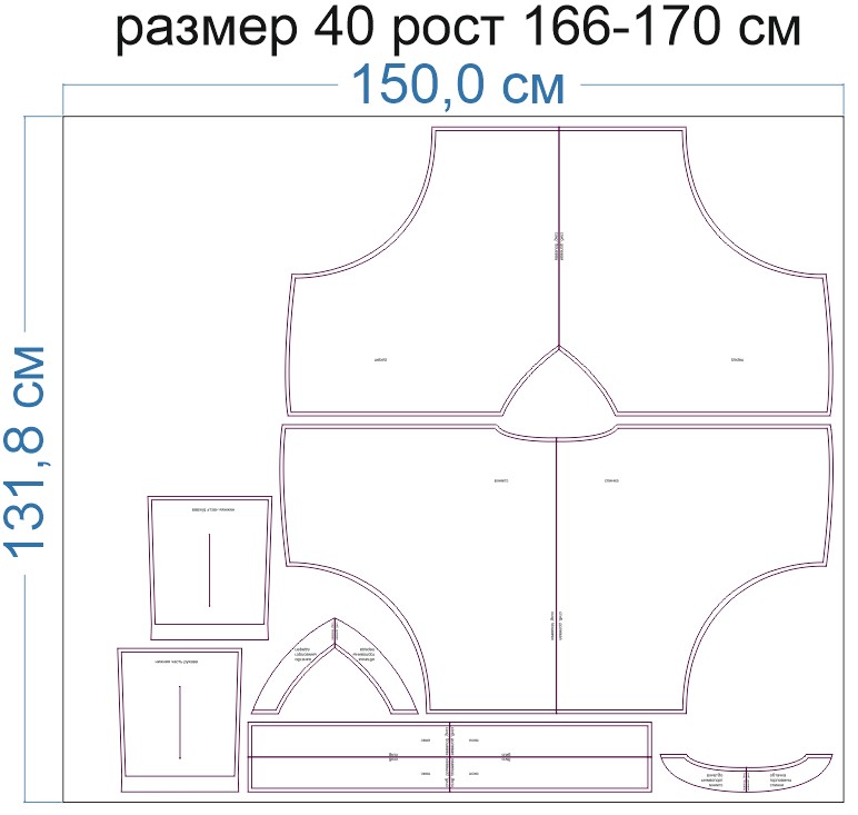 Внимание: расчет выполнен для однотонной ткани без рисунка, без учета направления ворса и возможной усадки! Усадка может достигать 15-20% от длины материала. Обязательно учитывайте это и берите с запасом.