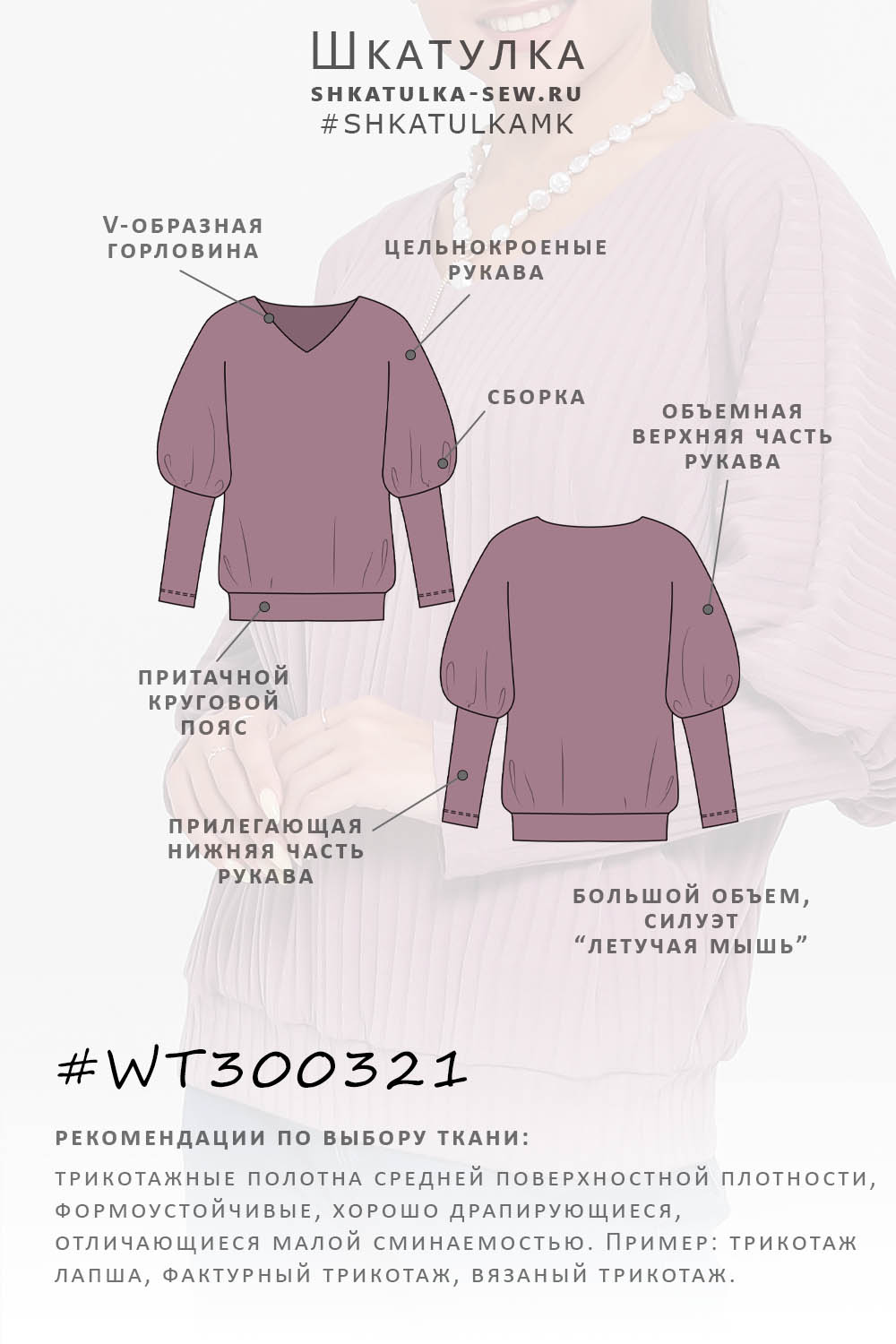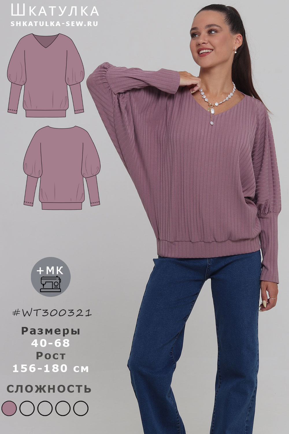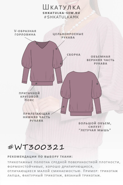 Выкройка свободного джемпера WT300321