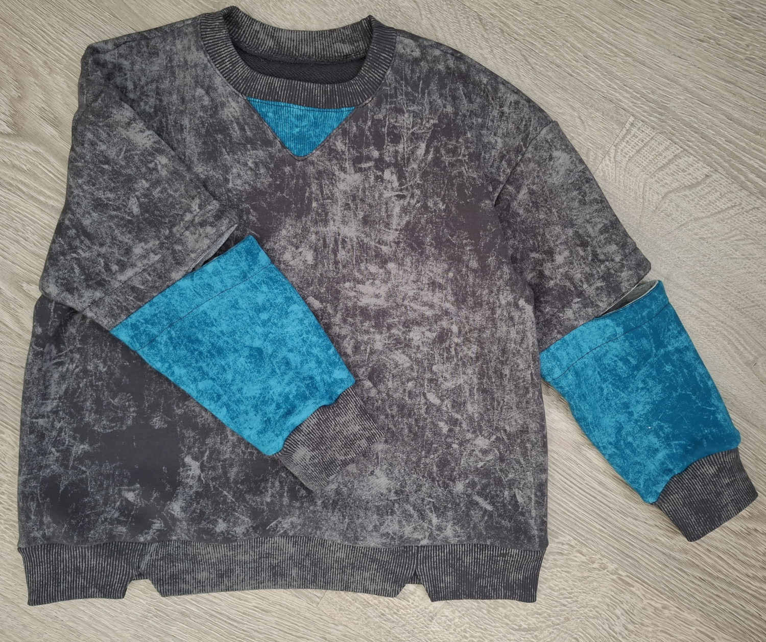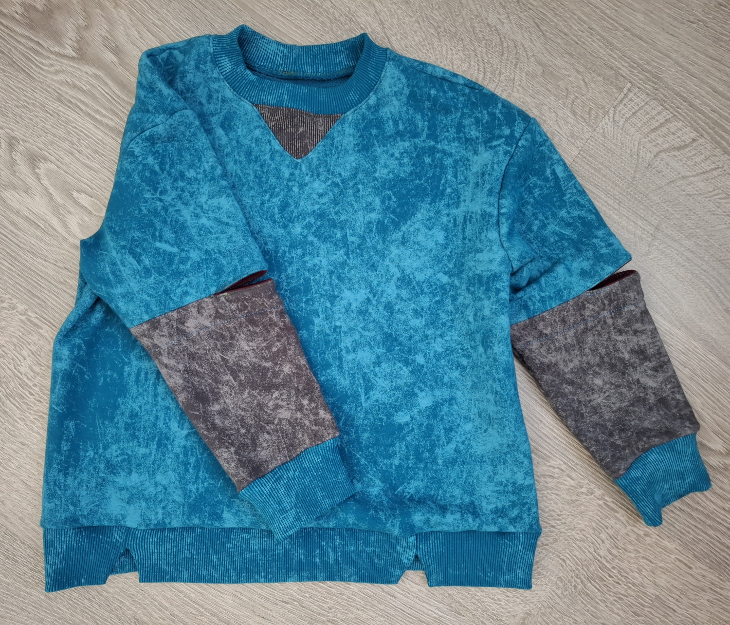 Образец сшит из трикотажа футер 3-нитка петля и кашкорсе.