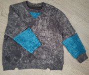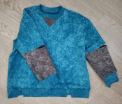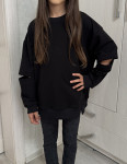 4Выкройка подростковой трикотажной толстовки объёма оверсайз, прямого силуэта, со спущенной линией плеча. Перед - с небольшой треугольной вставкой в области горловины. Спинка - цельная, без особенностей. Горловина толстовки имеет круглую форму, обработана трикотажной обтачкой. Рукава - рубашечного покроя, длинные, на притачной трикотажной манжете по низу. На уровне локтя на рукавах предусмотрены разрезы, обработанные обтачками. По низу толстовки предусмотрен трикотажный пояс, обработанный уголками. Длина изделия - до линии бёдер.
