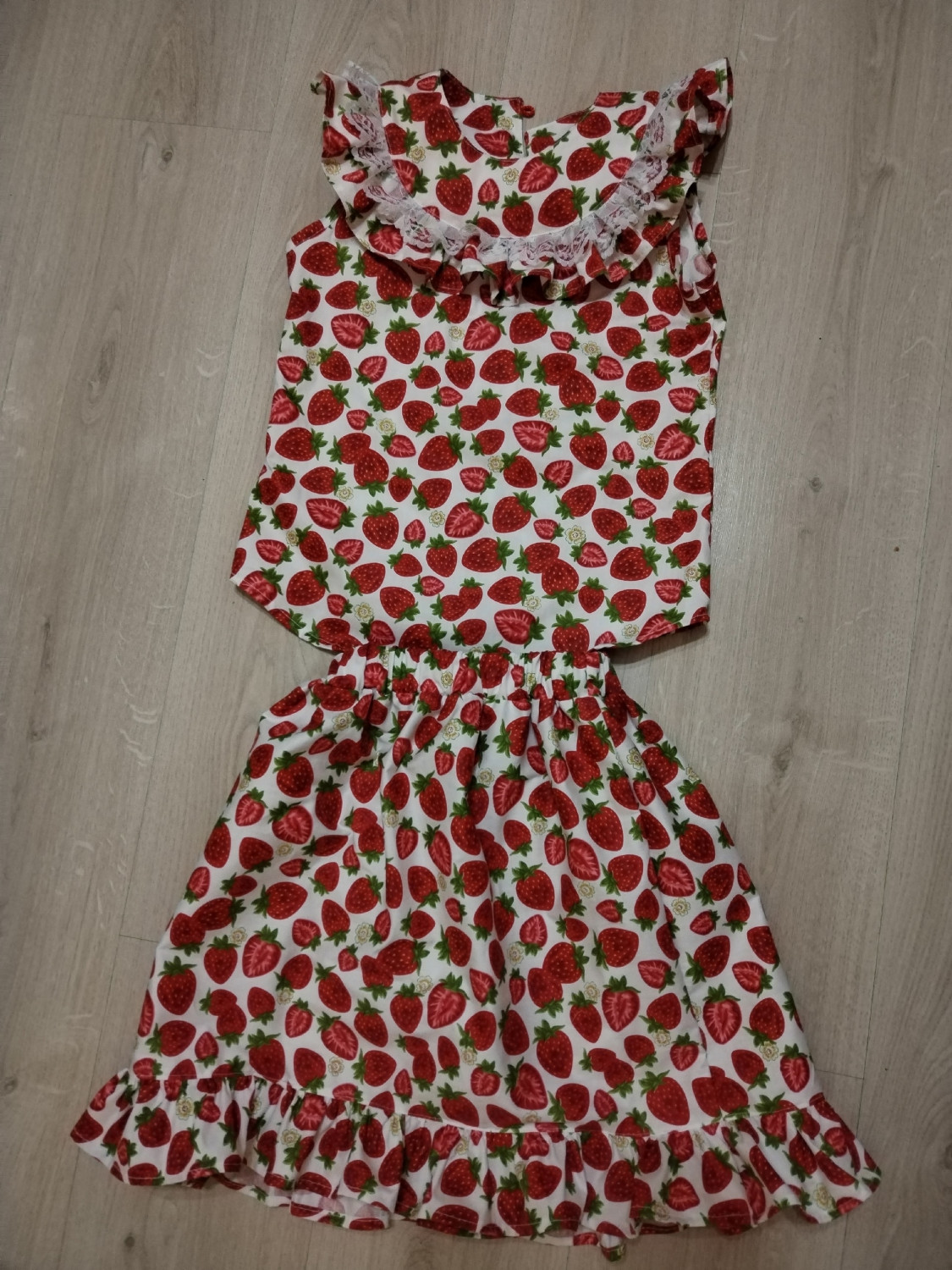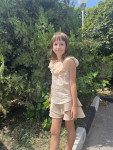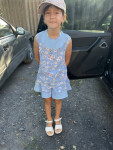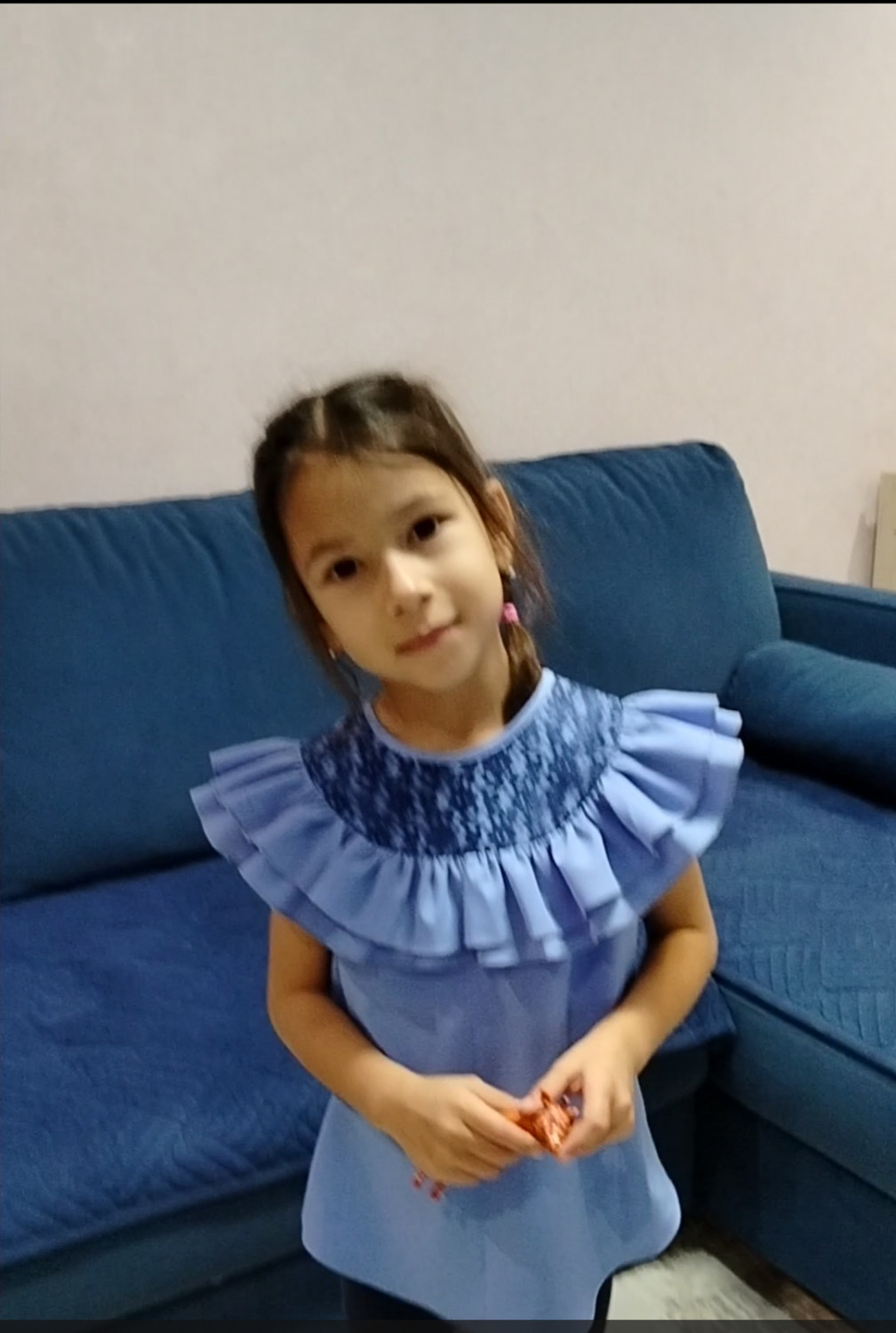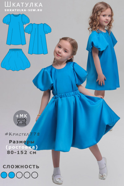 10Параметры модели: рост 113 см, обхват груди 57 см, обхват талии 55 см, обхват бедер 62 см. Выбрана выкройка 110 размера. Корректировки не выполнялись.