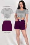 Топ женский прилегающего силуэта. Укороченный по длине, с завязками по низу переда, с короткими рукавами. Без застёжки. С круглым вырезом горловины, обработанным обтачкой.