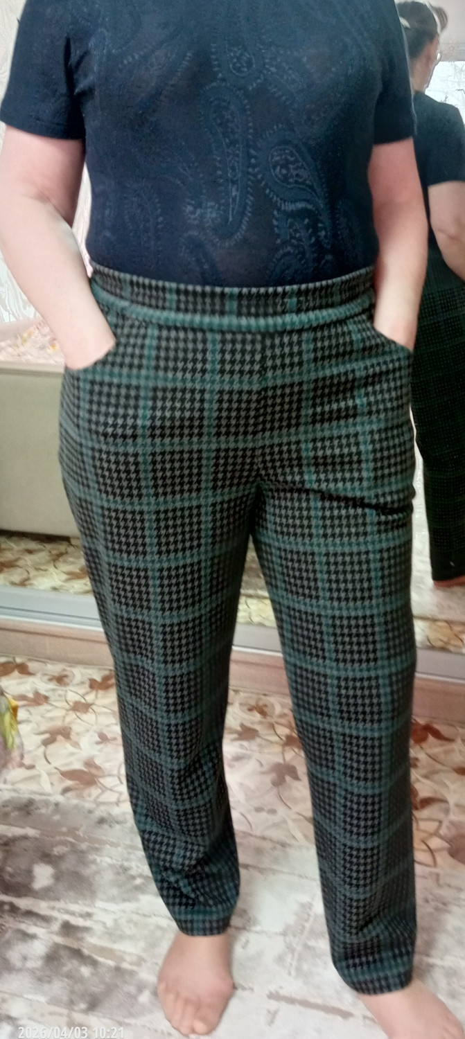 Зеленые брюки - рост 173 см, обхват груди 92,5 см, обхват талии 70 см, обхват бедер 104 см . Выбрана выкройка 48 размера, рост 171-175 см. Корректировки не выполнялись.