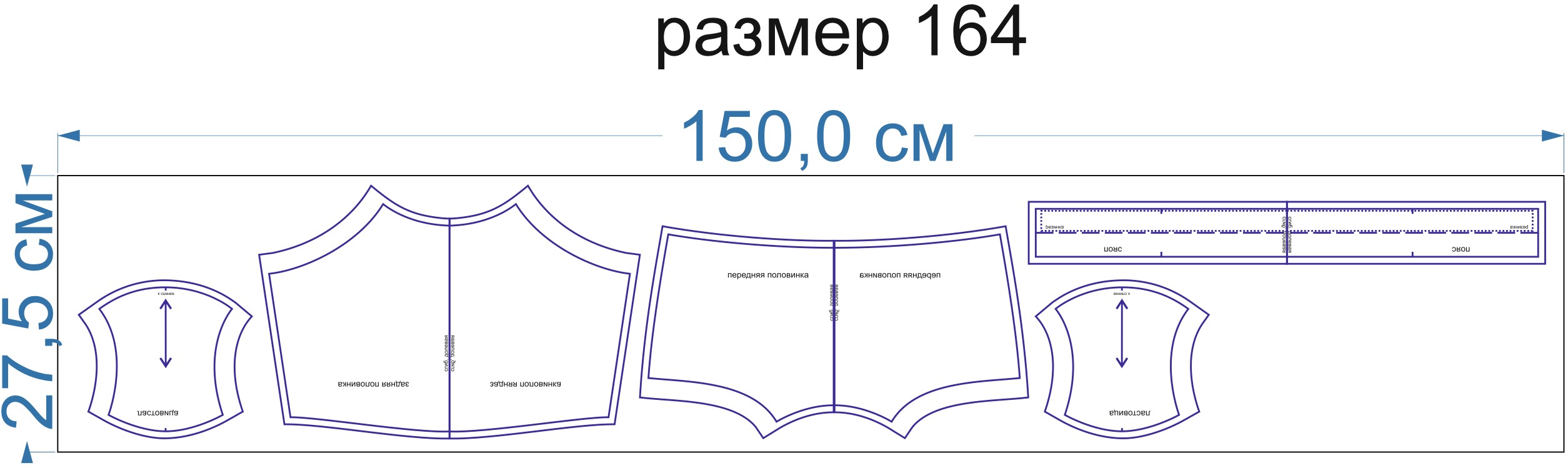 Образцы раскладки на трикотаже для выборочных размеров (расчет выполнен для однотонного трикотажа одного цвета без учета направления ворса):