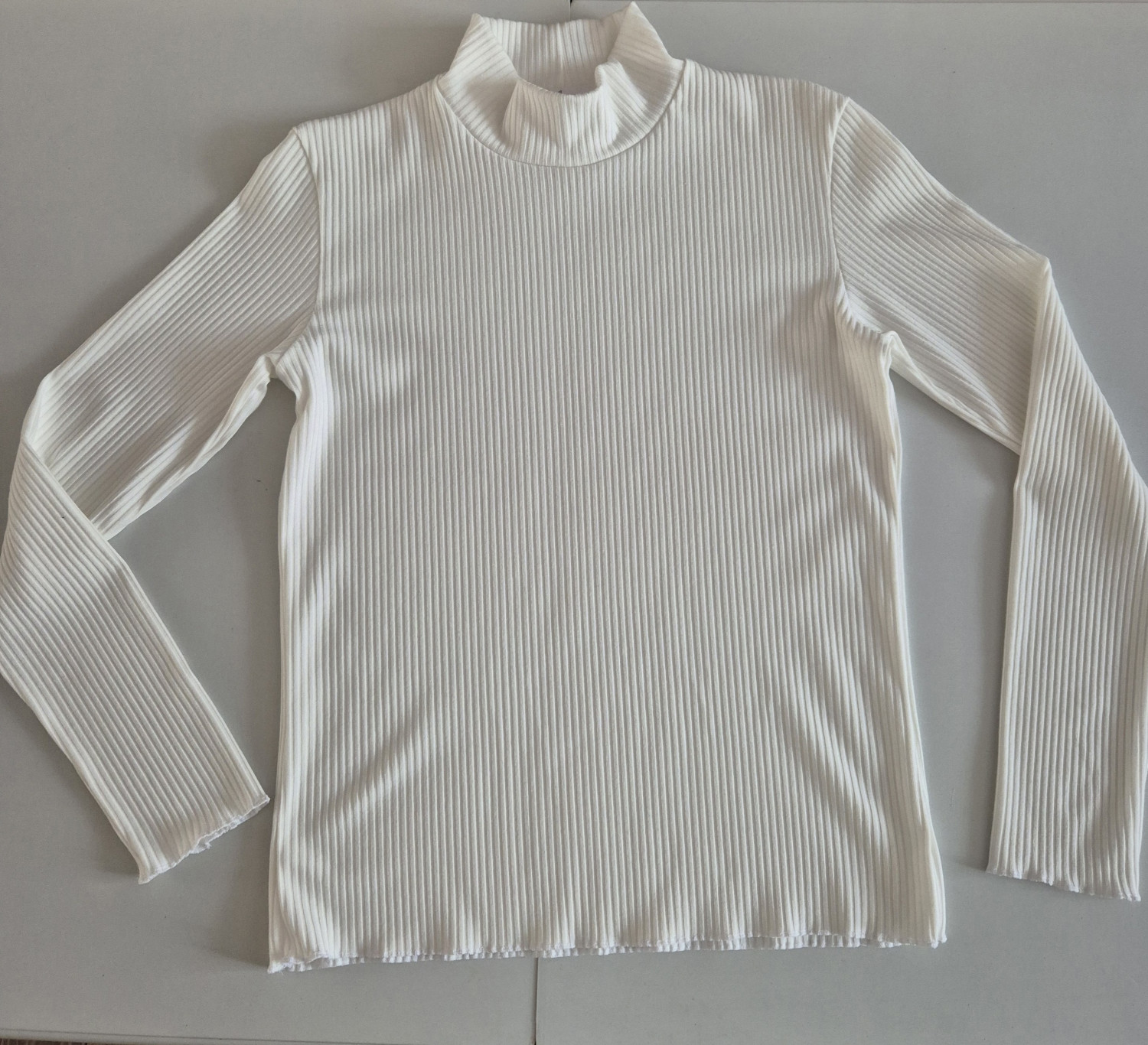 Водолазка трикотажная прилегающего силуэта, с воротником стойкой, длинными рукавами с манжетами и поясом. Без застежки.