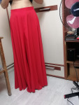 Юбка-брюки – эффектная и невероятно комфортная одежда не только для повседневного гардероба, но и для самых праздничных или значимых поводов. Грамотное применение соответствующих тканей и расцветок позволяет использовать такую модель женщинам любых возрастов. Классическая посадка, изящное облегание линии талии и бедер, и плавное струящееся ниспадание полотнищ брюк до самого пола визуально вытягивают и стройнят. В комплекте с такой же легкой и воздушной блузой эти брюки создадут беспроигрышный вечерний наряд. Объемный свитер грубой вязки и массивные ботинки – фьюжн элегантной классики с уютным комфортом городского кэжуал-стиля.