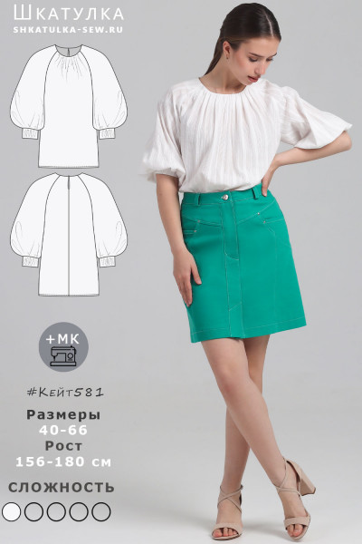 10Параметры модели: рост 168 см, обхват груди 83 см, обхват талии 62 см, обхват бедер 96 см. Выбрана выкройка 44 размера, рост 166-170 см. Корректировки не выполнялись.