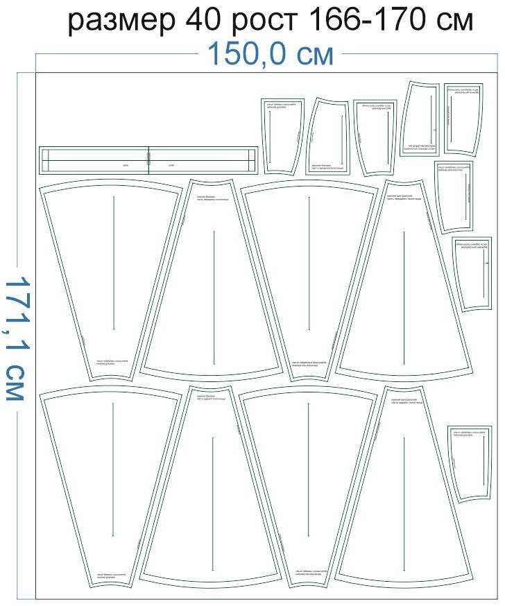 Образцы раскладки на ткани для выборочных размеров (расчет выполнен для однотонной ткани без учета направления ворса):