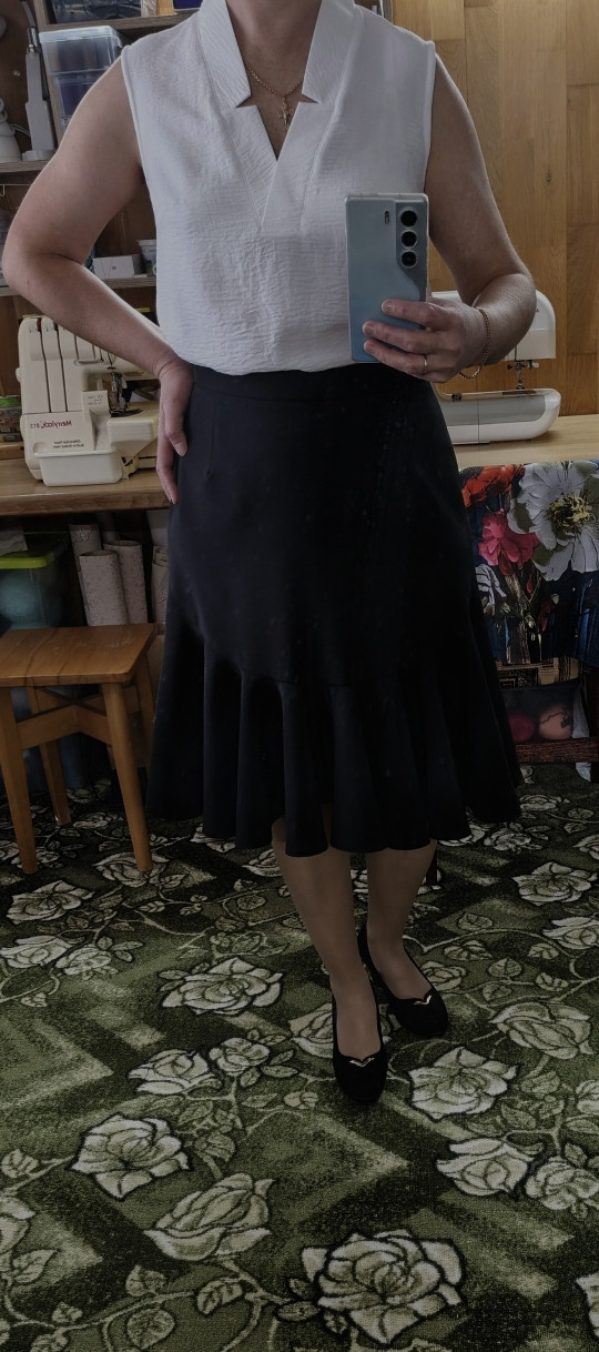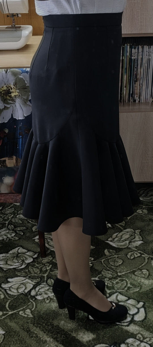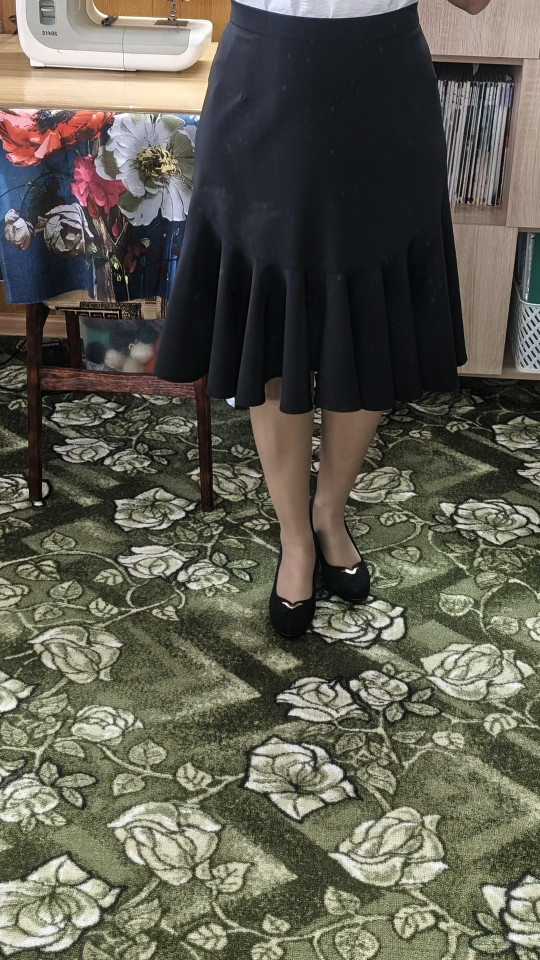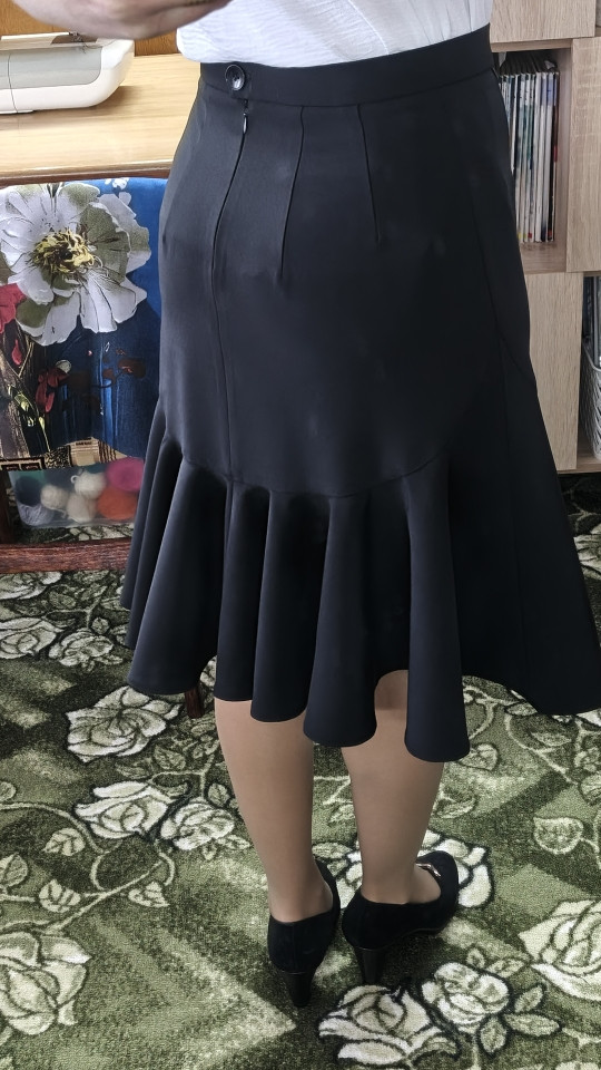 Юбка цвета хаки - рост 173 см, обхват груди 92 см, обхват талии 76 см, обхват бедер 106 см. Выбрана выкройка 48 размера, рост 171-175 см. Корректировки не выполнялись.