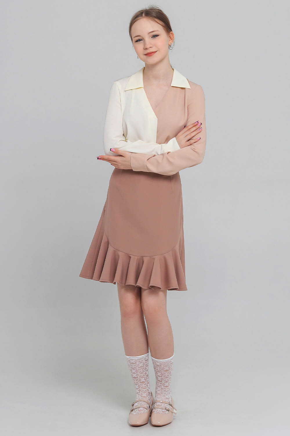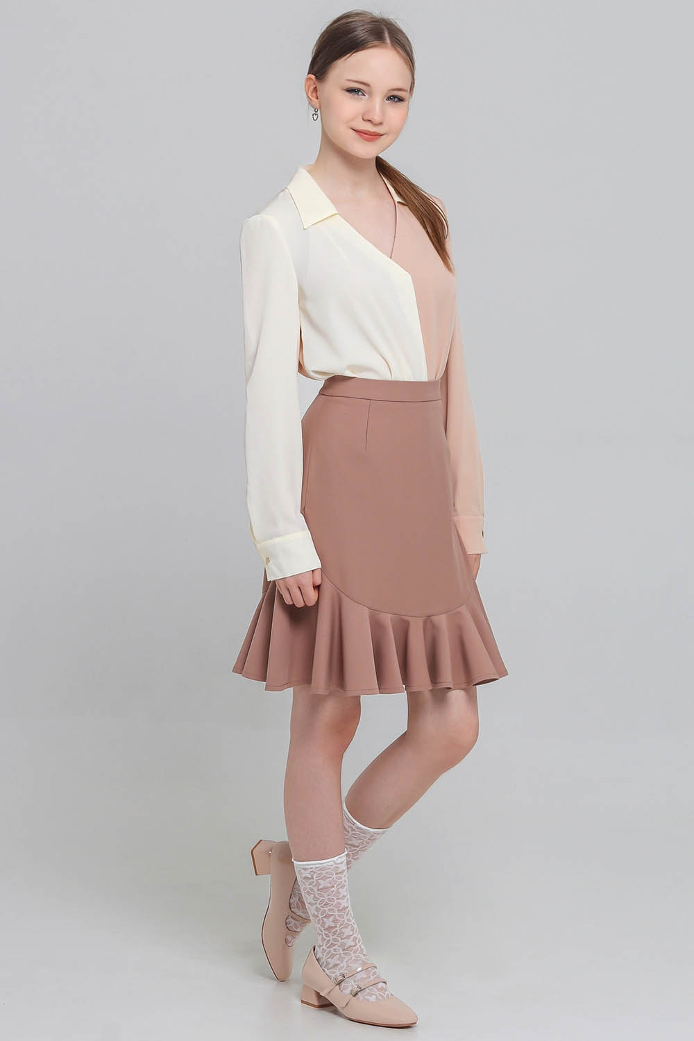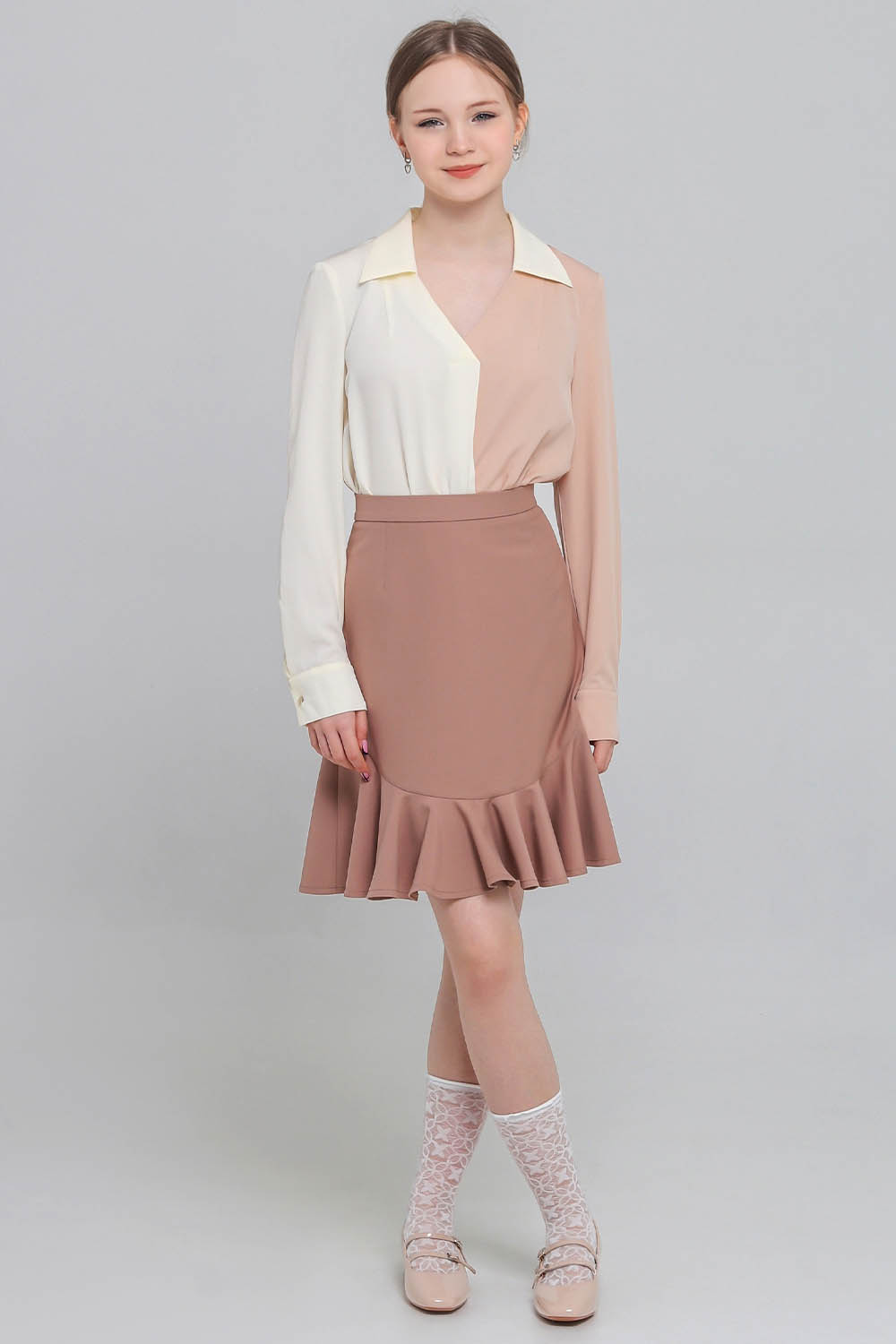 Длина юбки - ниже колена.