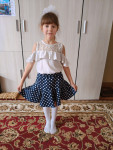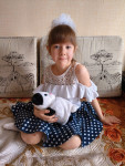 10Параметры модели: рост 118 см, обхват груди 59 см , обхват талии 55 см, обхват бедер 63 см. Выбрана выкройка 116 размера. Корректировки не выполнялись.