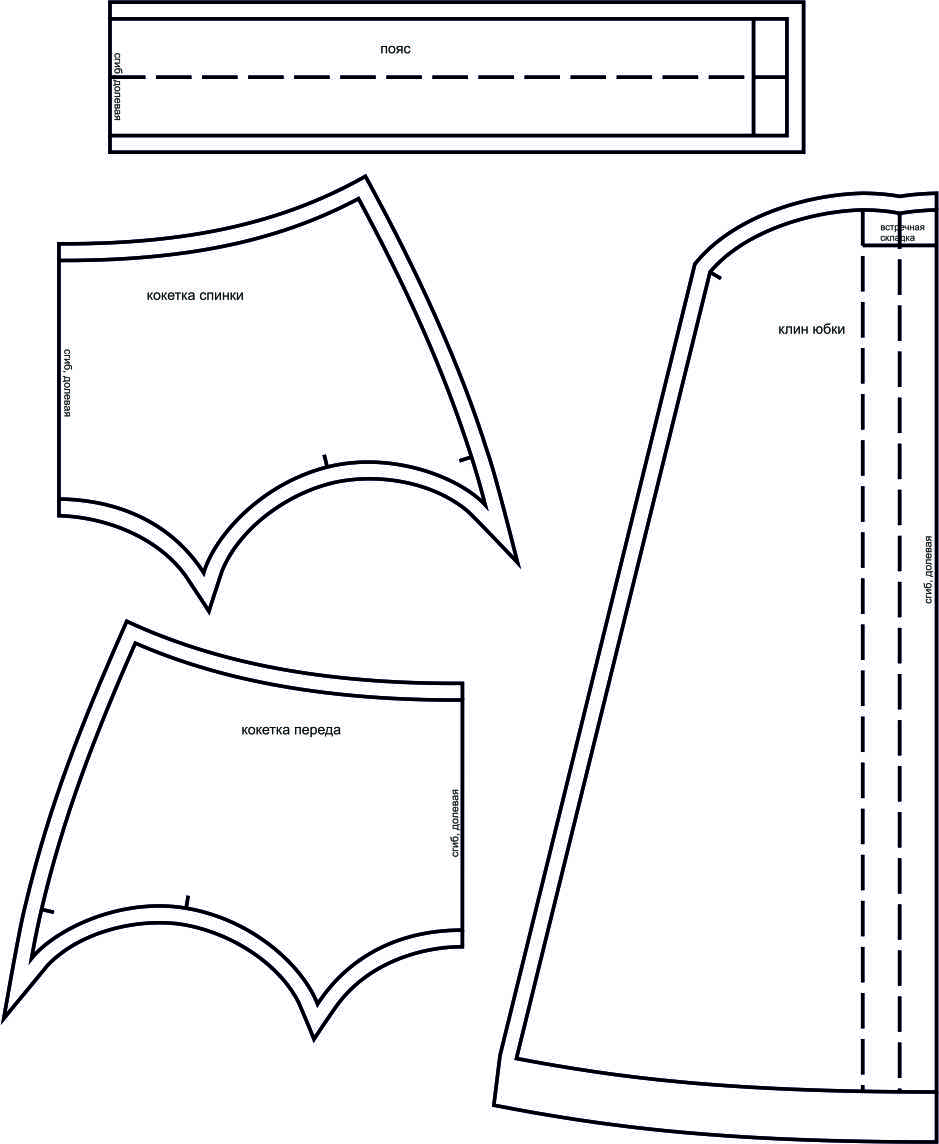 Выкройки даны с припусками на швы. Они обозначены двойным контуром.