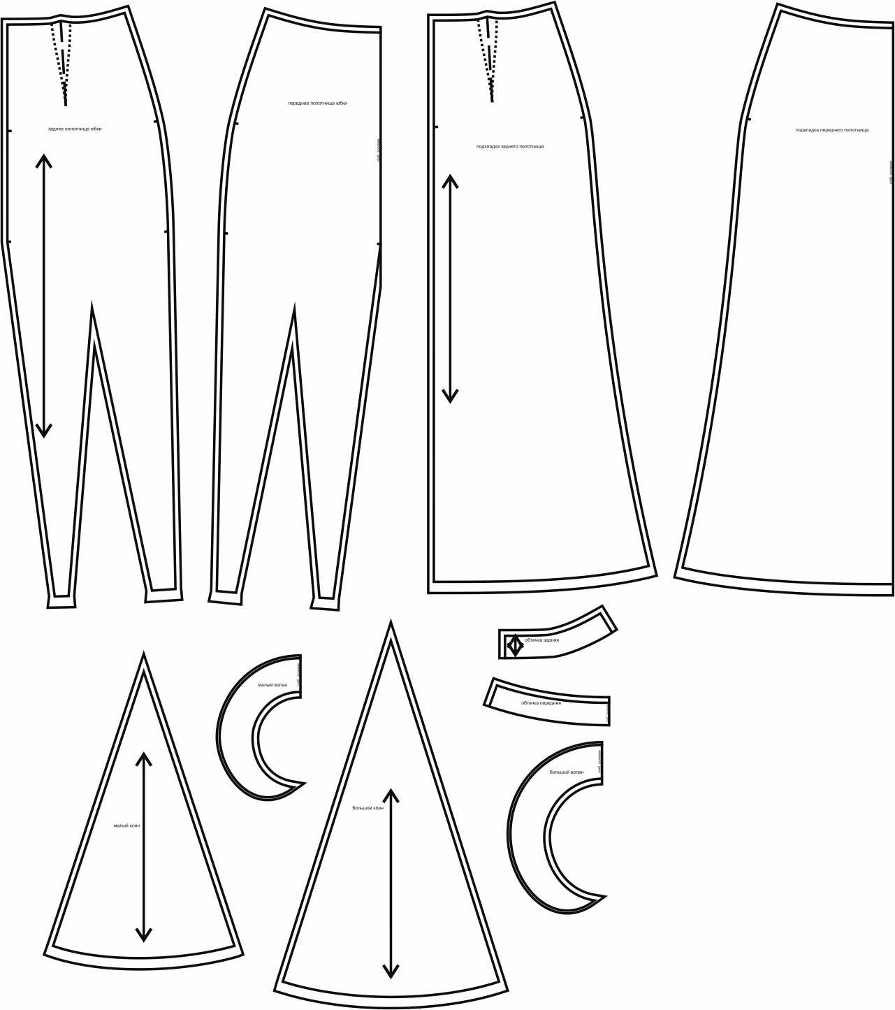 Выкройки даны с припусками на швы. Они обозначены двойным контуром.