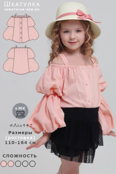 10Параметры модели: рост 113 см, обхват груди 57 см, обхват талии 55 см, обхват бедер 62 см. Выбрана выкройка 110 размера. Корректировки не выполнялись.